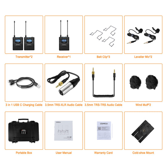 comica CVM-WM300A 96-Channel UHF Wireless Lavalier Microphone System Compatible with Cameras, Camcorders and Smartphones, Perfect for YouTube Podcast Vlog Video Recording and Interview(2TX+1RX)