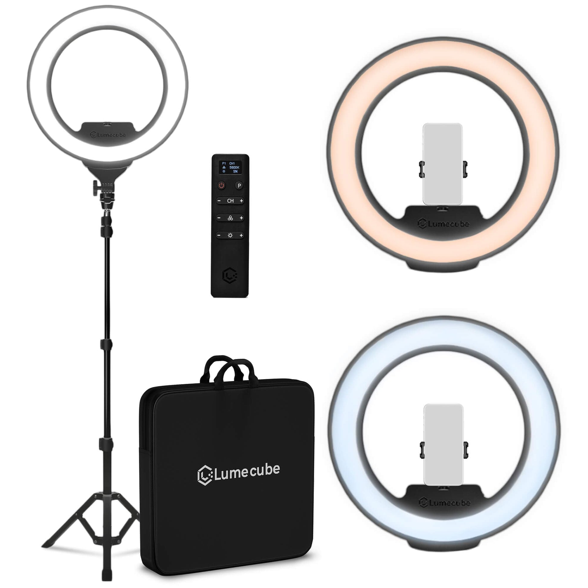 - Complete Kit with Case: The Lume Cube Ring Light Pro is a complete set up including the light and the stand, as well as a soft side carry case, remote, power cord and phone holder. Lume Cube is in Carlsbad, CA