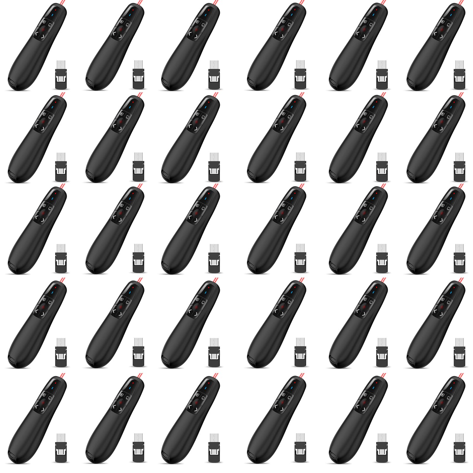 Wireless Presentation Clicker Presenter Remote: 30-Pack USB Type C PowerPoint Clicker with Red Pointer Long Range PPT Control - Universal Power Point Slide Advancer for Mac MacBook Laptop PC Computer